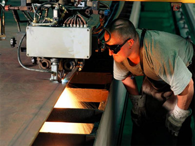 s autogenní tříhořákovou a přímou pálící hlavou, rozměry stolů: 3000 x 15000 mm