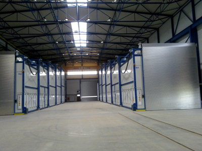 2x tryskací kabina 5000 x 6000 x 30000 mm